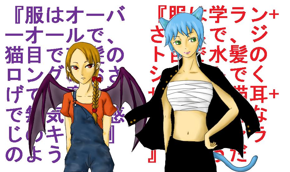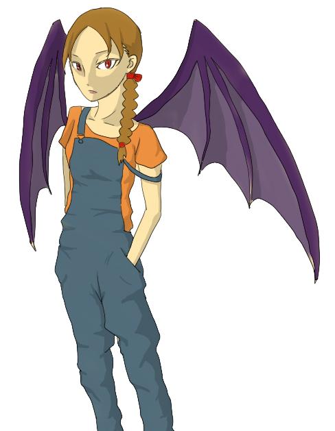 『服はオーバーオールで、猫目で茶髪のロングのおさげで悪魔の翼で無気力な感じのキャラ』のようだ