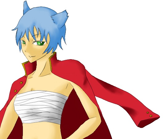 『服は学ラン+さらしで、ジト目で水髪のショートでくせっ毛で猫耳+猫尾で姐御な感じのキャラ』のようだ