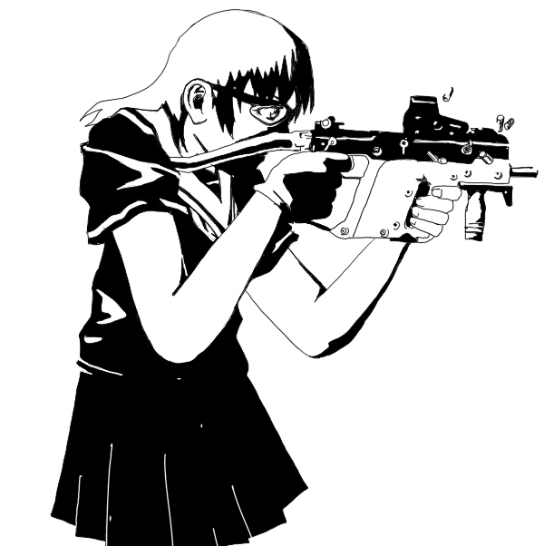 反動のキツイ45ACP弾を邸反動で撃てるサブマシンガン。